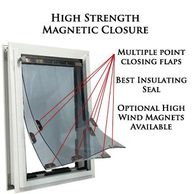 Shatter resistant swing style doors provide durability and highest level of energy efficient pet doors available. Never replace flaps again.